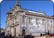 Igreja Terceiros do Carmo Situada na conhecida Praça dos Leões junto à igreja dos Extintos Carmelitas, ergue-se a igreja do Carmo, toda em estilo Barroco do século XVIII. A frontaria, dividida em três andares. A separar os dois nichos que protegem as esculturas dos profetas Elias e Eliseu encontramos o portal do templo. Acima destes abrem-se duas grandes janelas, ao centro Santa Ana protege e abençoa que lá entra. Rematando a frontaria pilastras laterais vindas desde a base reduzem-se a suportes das pirâmides e lá no alto junto ao crucifixo erguem-se as estátuas dos quatro Evangelistas: S. Marcos e S. Lucas ao centro e S. Mateus e S. João nas extremidades. A fachada lateral está toda revestida a azulejo datando esta modificação de 1911. |