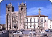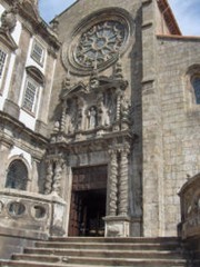 Catedral da Sé O monumento mais antigo e catedral portuense, a Sé, provêm do século XII após a eleição do Bispo D. Hugo, Arcediago da Sé de Compostela. Foi a este que em 1120 a rainha Dª Teresa doou o burgo portucalense e o seu respectivo couto de onde proveio a dita catedral. D. Hugo é além de restaurador desta mui nobre cidade, o mentor deste honroso património que a Comissão mundial denominou de Património Mundial. A Sé portuense, de origem românica fica situada no monte da Penaventosa, também chamado de Terreiro da Sé. Conta-se que a primeira pedra foi assente pela rainha Dª Teresa viuva do conde D. Henrique, só vindo a ser concluída já no reinado de D. Dinis. A sua decoração primitiva foi baseada na Sé velha de Coimbra. No entanto com o passar dos tempos esta catedral sofreu diversas alterações que lhe apagaram os traços primitivos. Anos mais tarde o artista fiorentino Nicolau Nasoni barroquisou-a desenhando-lhe as pinturas murais da capela-mor e construindo-lhe a galilé (parte alpendrada e sustentada por colunas). A fachada principal é enquadrada por duas torres. O portal, agora em estilo rococó, substituiu o primitivo em estilo românico destruído em 1722. A sua construção é sustentada por colunas encimadas por um frontão, tendo a meio um varandim com pequenas colunas. Na parte superior a rosácea encontra-se uma sinecura com a imagem de Nossa Senhora da Assunção, padroeira da catedral, pertencente ao século XVIII. Esta rosácea, datada do século XIII, foi sempre conservada. Tem a sustentar-lhe os raios arcos tribolados e a envolve-la folhas de figueira. Há duas cruzes a rematar a construção, uma em estilo românico e a outra em estilo gótico |