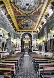 Capela de Nossa Senhora da Guia Exteriormente a capela-mor é rematada por grande cúpula assente num telhado cujas extremidades são rematadas por pináculos.No interiordestaca-se o revestimento azulejar,o púlpito e o tecto decorado com motivos marianos. |