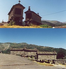 Os espigueiros, também chamados de canastros, caniços ou hôrreos, são estruturas normalmente de pedra e madeira, existindo no entanto alguns inteiramente de pedra, com a função de secar o milho grosso através das fissuras laterais, e ao mesmo tempo impedir a destruição do mesmo por roedores através da elevação deste. Como o milho requer que seja colhido no Outono, este precisa de estar o mais arejado possível para secar numa estação tão adversa como o Inverno. No território de Portugal Continental, encontram-se principalmente a Norte, em particular na região do Minho. Na Galiza, em Espanha, existem espigueiros idênticos aos que existem em Portugal. Também há estruturas semelhantes nas regiões espanholas de Navarra, Astúrias e na província de León, onde recebem o nome de hórreo.