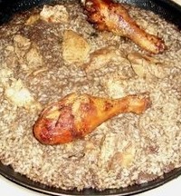 Três ou quatro minutos antes de ficar pronto junte o sangue, misture-o bem, junte também a carne e deixe apurar.