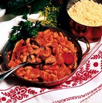 Coze-se o feijão, que já está demolhado, com as cenouras às rodelas e uma cebola aos gomos.