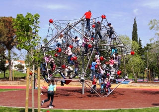 Na área infantil existe uma outra zona relvada que tem um circuito para triciclos e pequenas bicicletas, estrutura para trepar em forma de galáxia, labirinto em estruturas verticais de madeira distribuídas pelo relvado e flores sonoras para que as crianças explorem os sons e as cores. Para além deste equipamento infantil, o espaço tem também uma área de merendas para os mais pequenos, inscrita no relvado e com uma clara ligação ao elemento água.